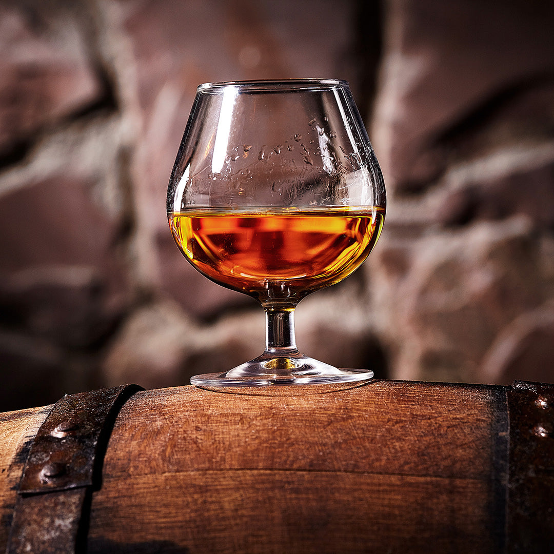 Prodotto nell’omonima cittadina francese, nella regione della Charentes, il cognac è un distillato di vino invecchiato in botti di rovere.